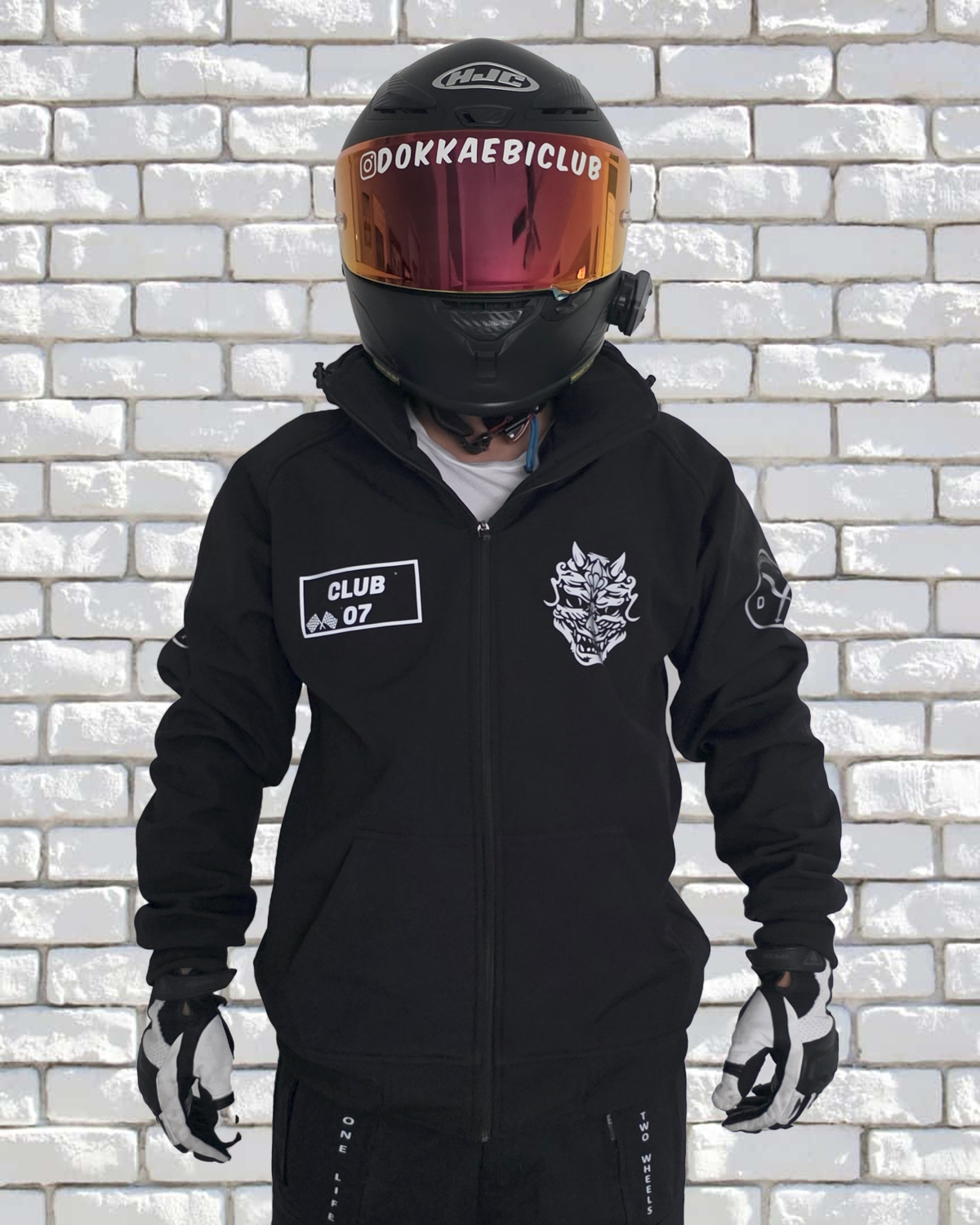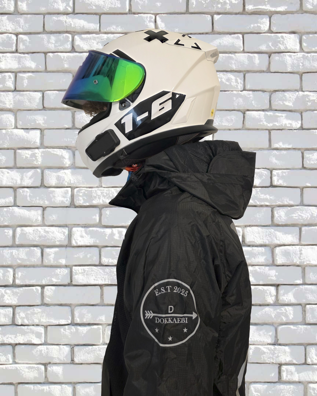 Dokkaebi Armored Mesh Zip Up Jackets is made of 100% polyester rip stop, mesh lining and a detachable hood which is perfect for those hot to extreme hot climates. Strategically designed to allow maximum air flow to the vital parts of the body. Dokkaebi Jackets have reflective logo’s that make you standout at night. They are designed to keep you safe during your rides, cool you down, and attract the eye to the stylish designs unique compared to other companies.